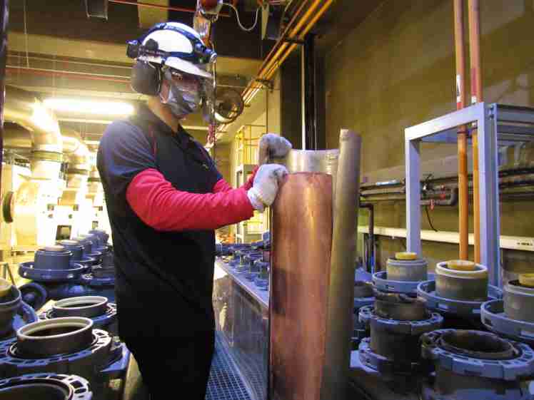888.BY集团电子游戏将废弃物转化成有效的工业或民生原物料,,图为废铜液淬炼后再制成纯度极高的铜管